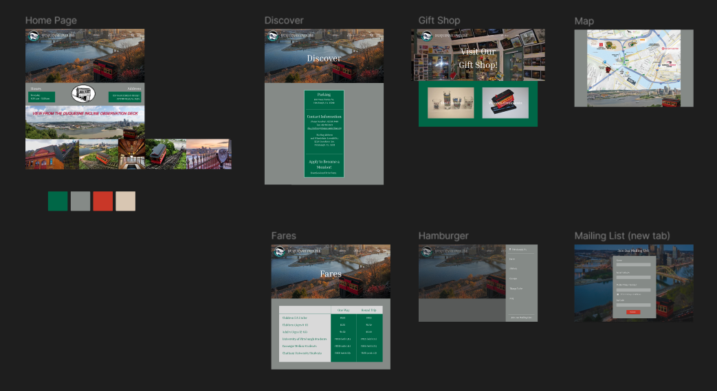 I redesigned and developed a modern, user-friendly website for the Duquesne Incline that improves navigation, accessibility, and visual appeal. Key visitor info like hours and fares was reorganized for easy access, and the site was built from scratch using HTML, CSS, JavaScript, and jQuery. I added interactive elements like a photo carousel, Google Maps embed, and a validated contact form. High-fidelity wireframes guided the design, and usability testing informed key updates. The final site delivers a clean, accessible experience that reflects the Incline’s historic identity while meeting modern user expectations.